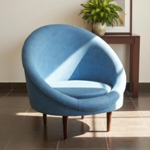 Modern Round Blue Velvet Accent Chair with Wooden Legs – RVJ Furnitures