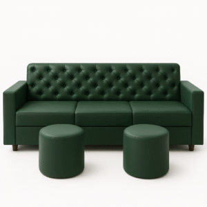Luxury Emerald Green Button Tufted 3-Seater Sofa with 2 Matching Pouffes – RVJ Furnitures