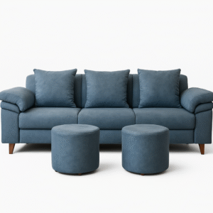 Modern Blue 3-Seater Sofa Set with Matching Pouffes – RVJ Furnitures