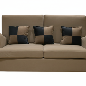 Modern High-Back Beige Sofa with Dual-Tone Checkered Pillows – RVJ Furnitures