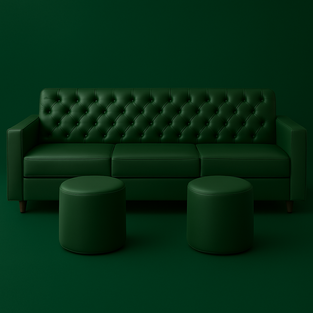 Luxury Emerald Green Button Tufted 3-Seater Sofa with 2 Matching Pouffes – RVJ Furnitures