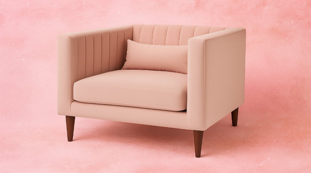 Blush Pink Velvet Channel Tufted Armchair with Lumbar Pillow & Tapered Wood Legs – Mid-Century Modern